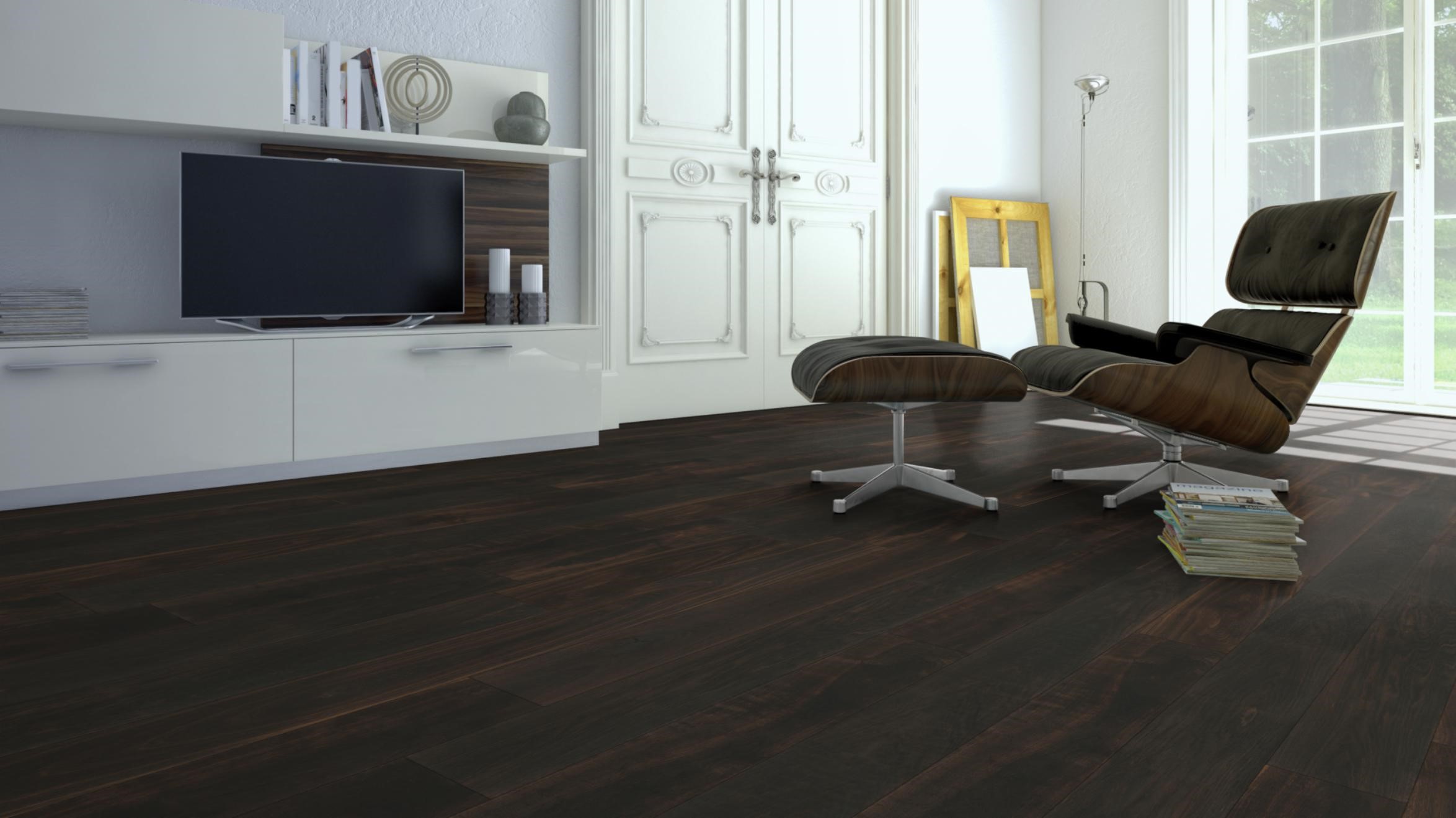Solid floorboards deep smoked oak.