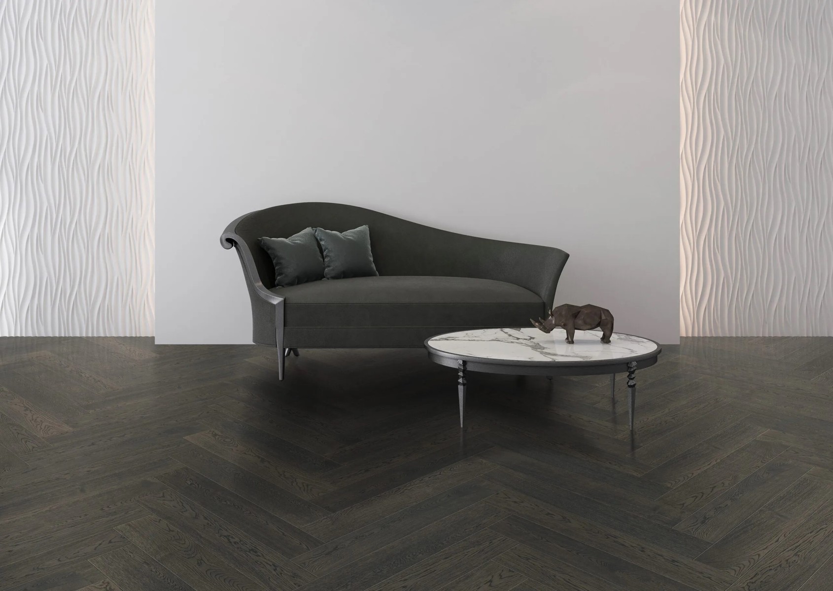 Herringbone parquet Oak SLA, 4 sides beveled, brushed, matt lacquered