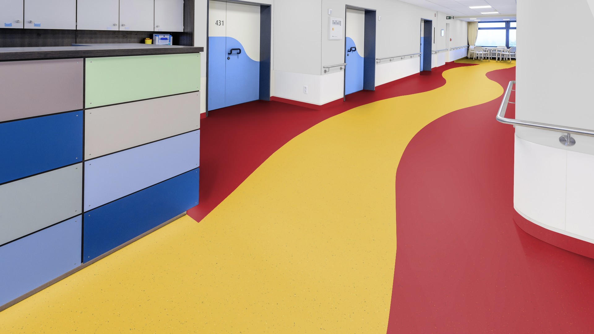 Linoleum surfacing is made of 98% natural (bio based and mineral) and 76% rapidly renewable materials, with up to 40% recycled content.