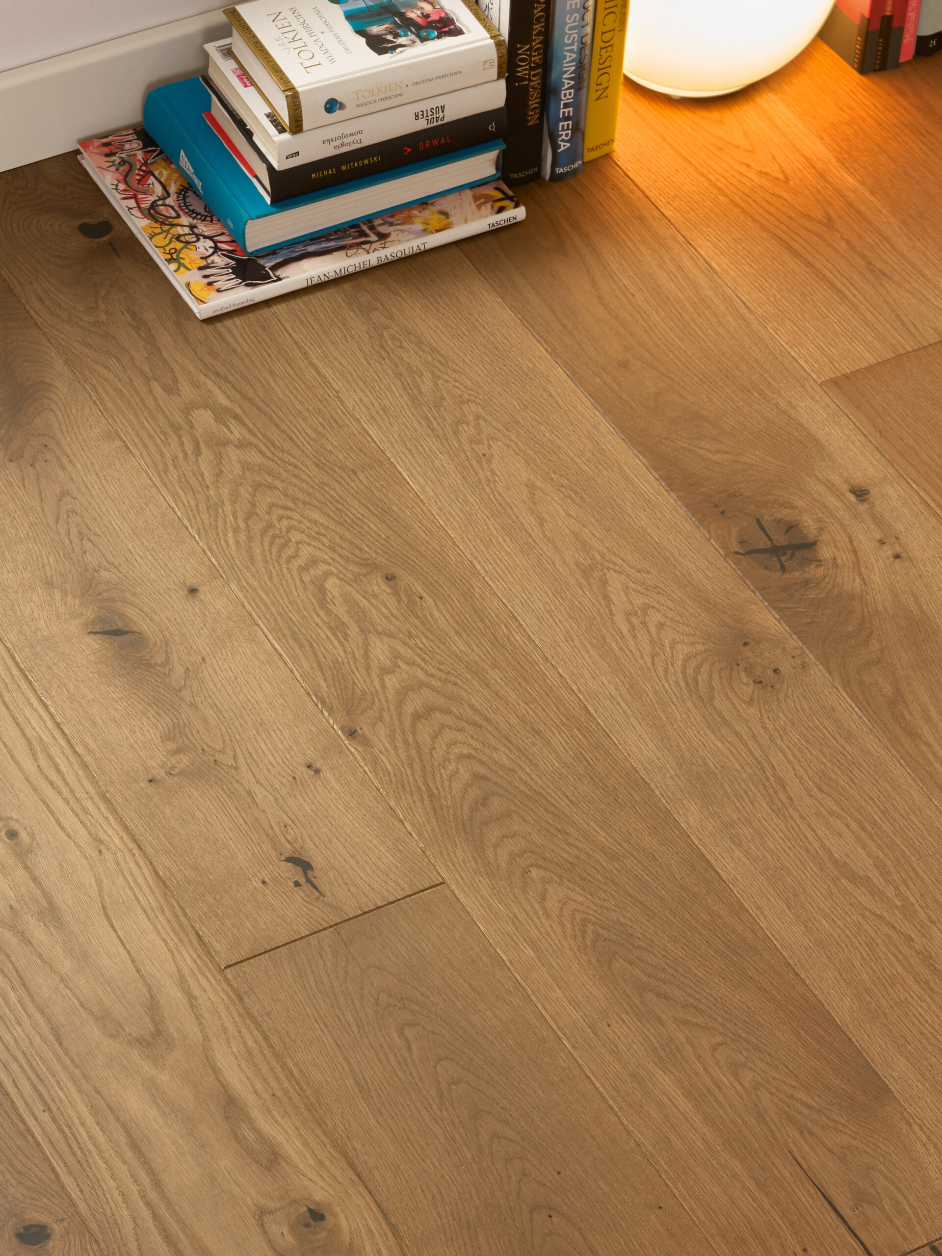 Parquet Oak, Grande Toffee, 1-strip, beveled, brushed, stained, natural oil