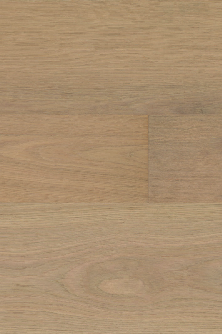 High impact and scratch resistance. The 0,6 mm thick natural wood veneer, pressed on a high-density fiber board (HDF), ensures superior impact resistance compared to the traditional wood flooring. The HDF middle layer just below the wear/top layer is many times stronger/tense than the natural softwood middle layer which is used on most parquet floors as middle layer. This makes the floor remarkably (3-4 times more) resistant to the impact of heavy objects, for example stiletto heels.