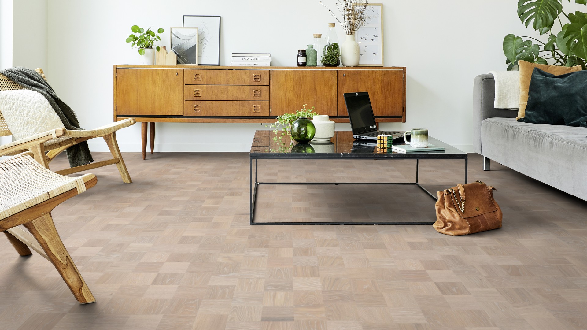Parquet Tarkett, Noble, Oak Manhattan, brushed, small block, Proteco Hardwax Oil