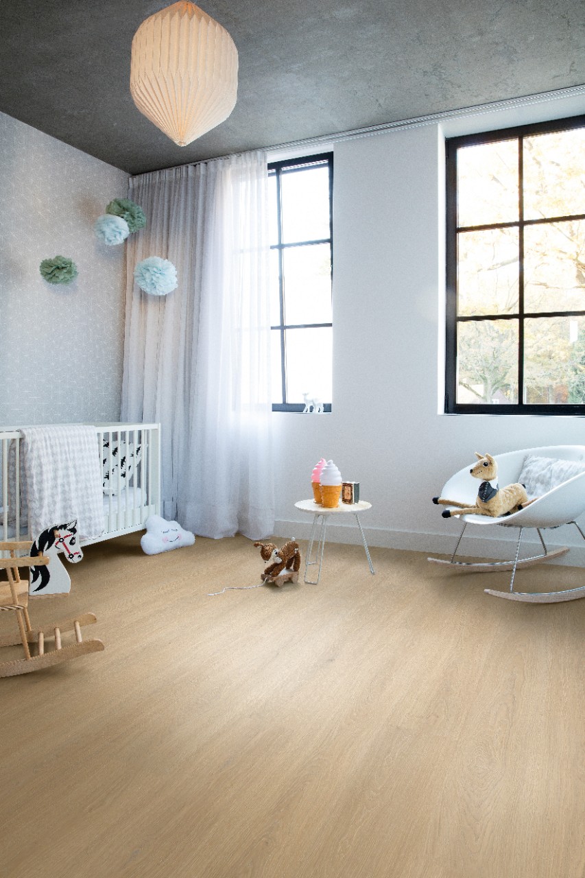 Vinyl parquet SPC Quick Step pure oak blush alpha medium planks, beveled