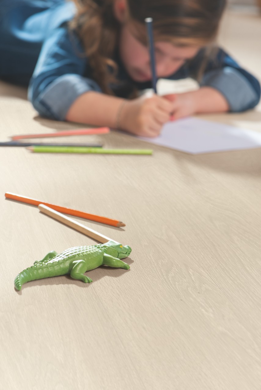 Vinyl parquet SPC Quick Step sea breeze oak beige alpha medium planks, beveled