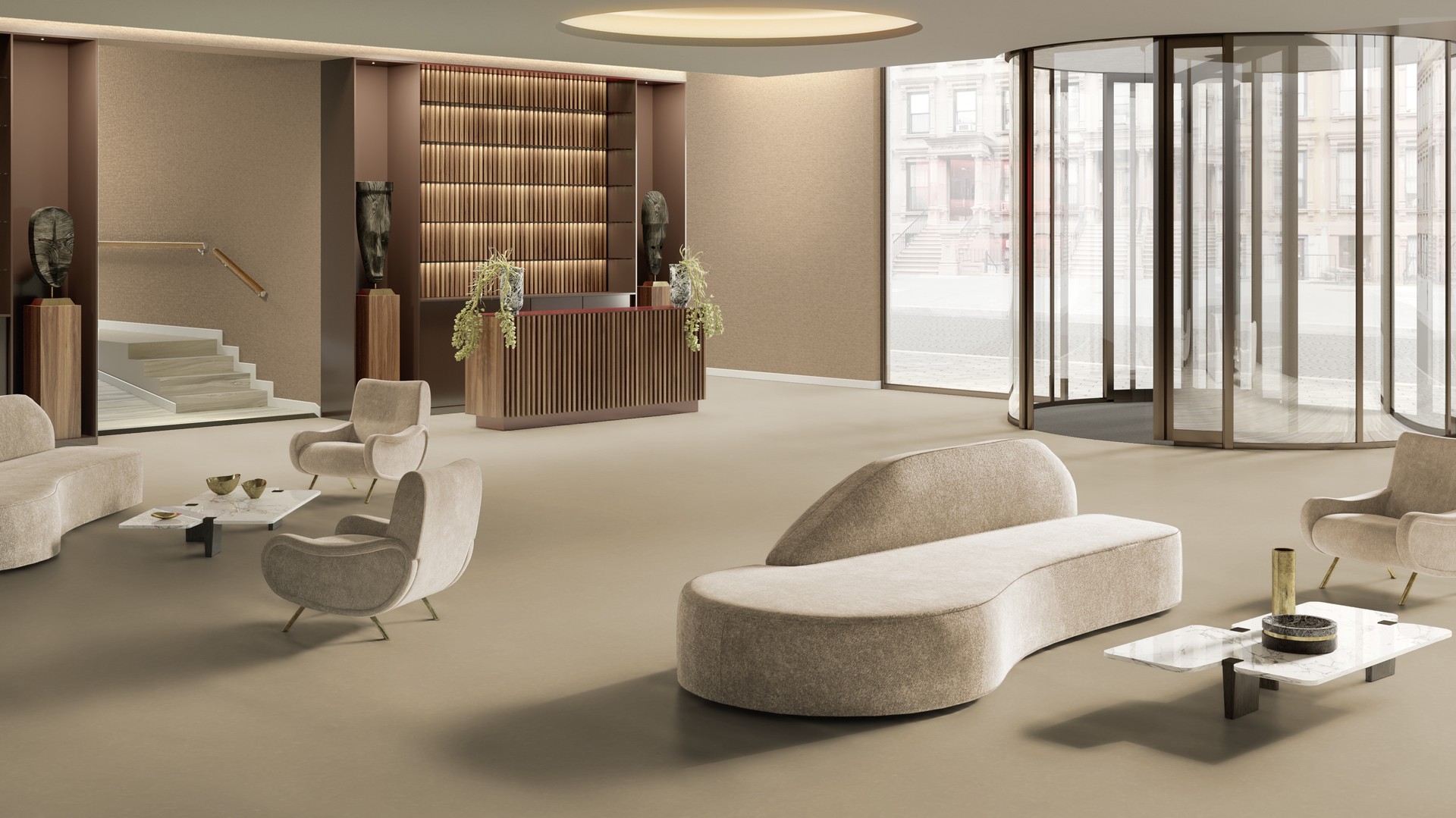 Акустическое решение из линолеума с подслоем из переработанного пеноматериала толщиной 1,5 мм.