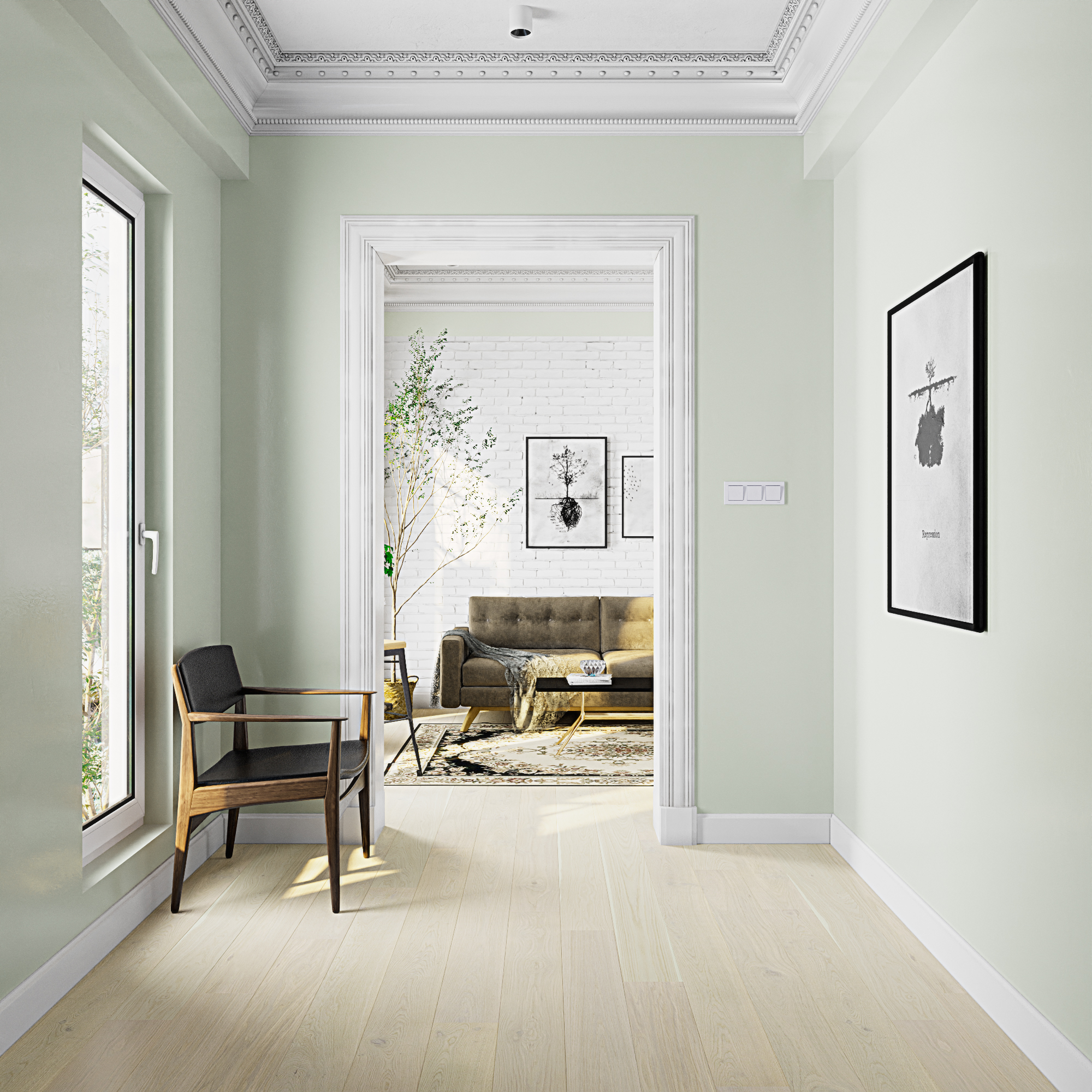 Паркет дуб, CD Latte, 1 полоса, фаска, брашированная, белый UV масло 4-6%