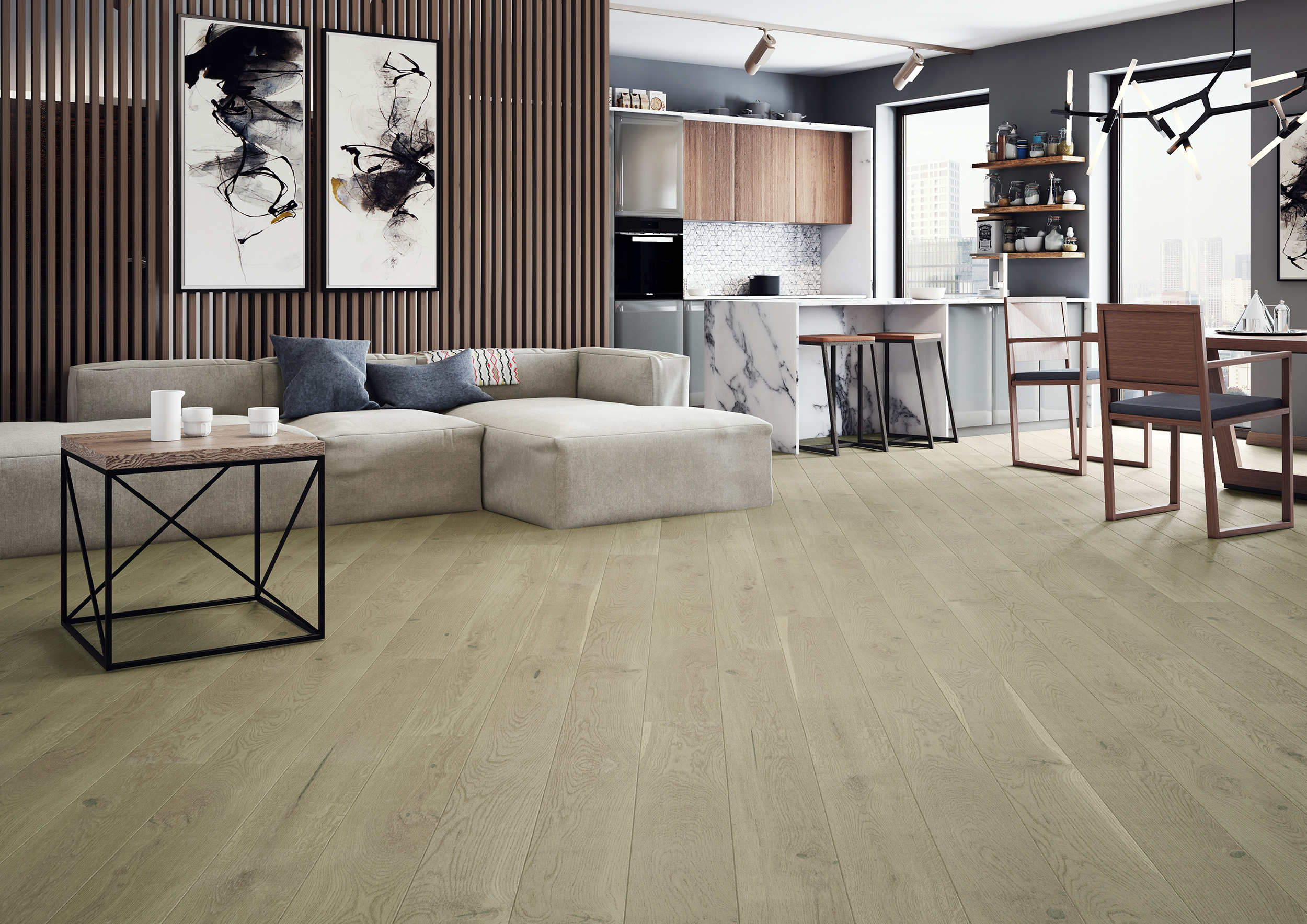 Паркет Дуб, Grande Nude, 1 полоса, фаска, брашированная, тонированный (окрашенный), матовый лак