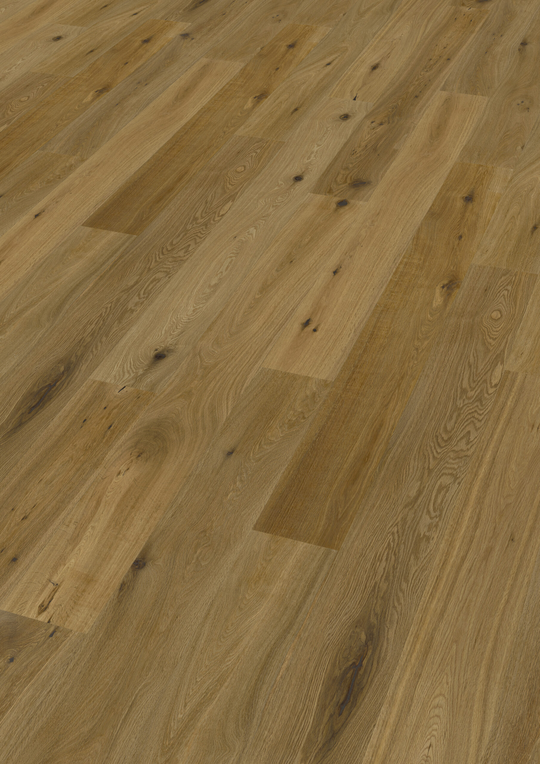 Трехслойные половые доски из дуба имеют красивую брашированное поверхность подчеркивающую прожилки и красоту дерева. В результате получается очень износостойкая поверхность, по которой приятно ходить, особенно босиком.