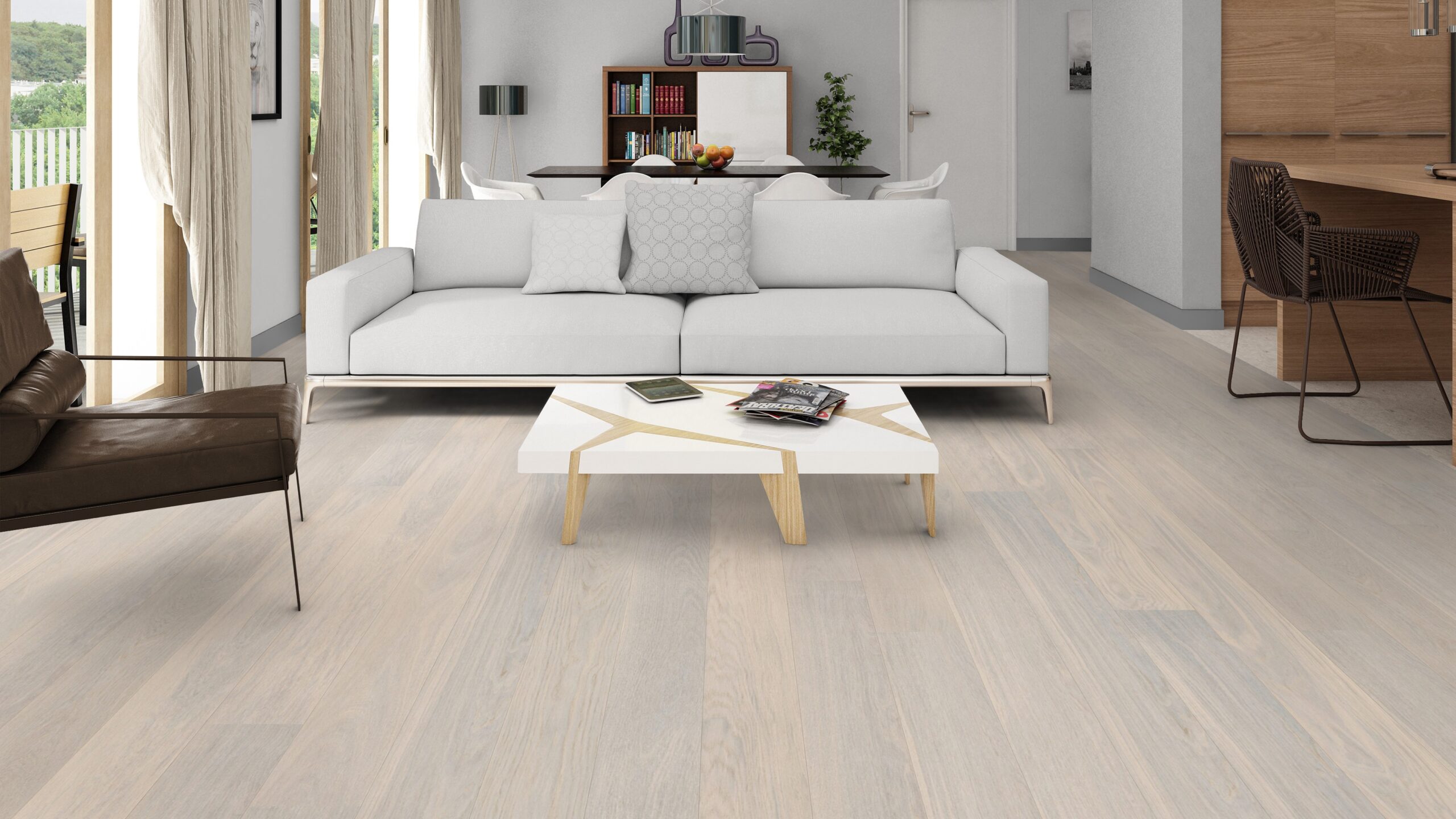 Паркет Tarkett, Shade, дуб Cotton White (белый) Plank XT, 2-х сторонняя фаска, 1 полоса, краска, Proteco Natura матовый лак