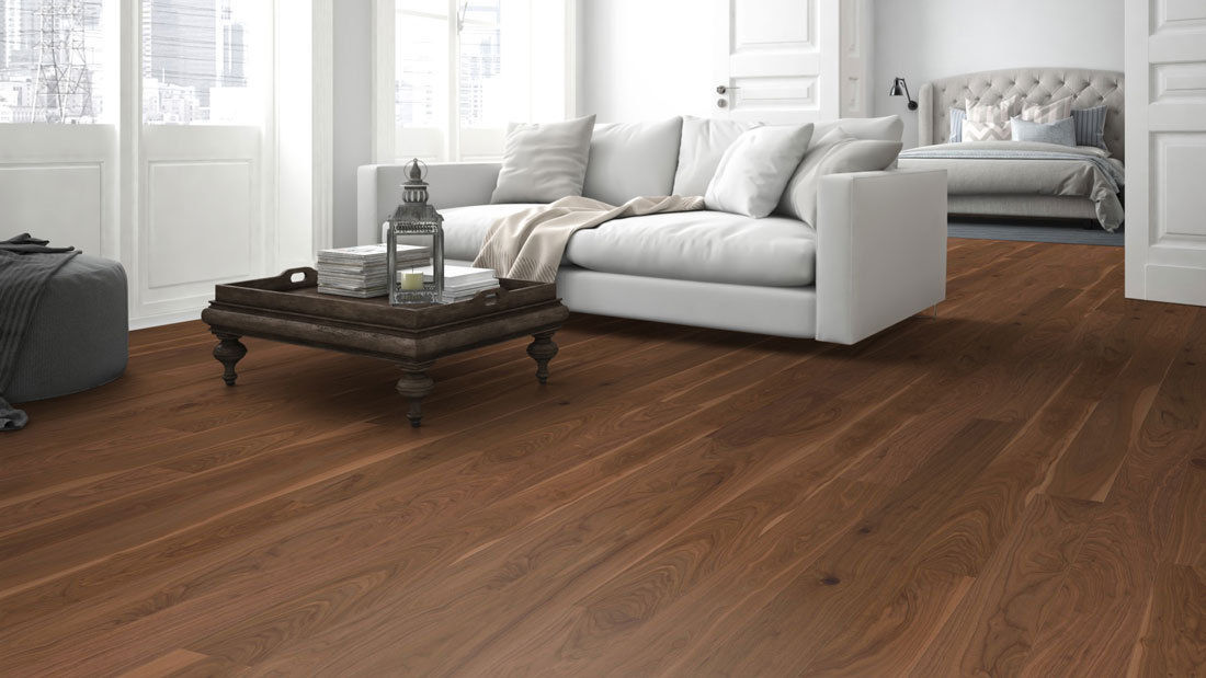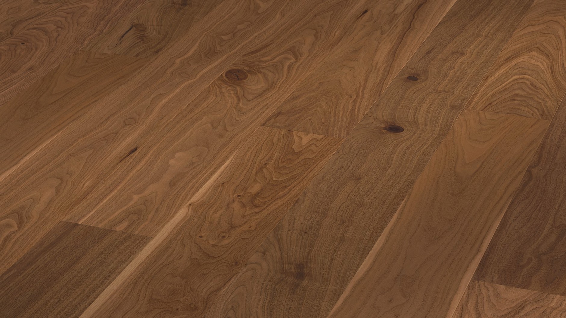 Паркетная доска Орех американский American walnut lively, 1 полоса, матовый лак PD400