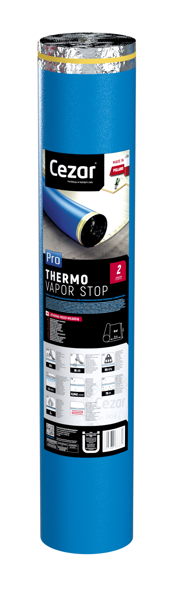 PRO Thermo Vapor Stop – on suure tihedusega polüetüleenist naturaal- ja laminaatparketi alusvaip, millel on foolium aurutõkkekile.