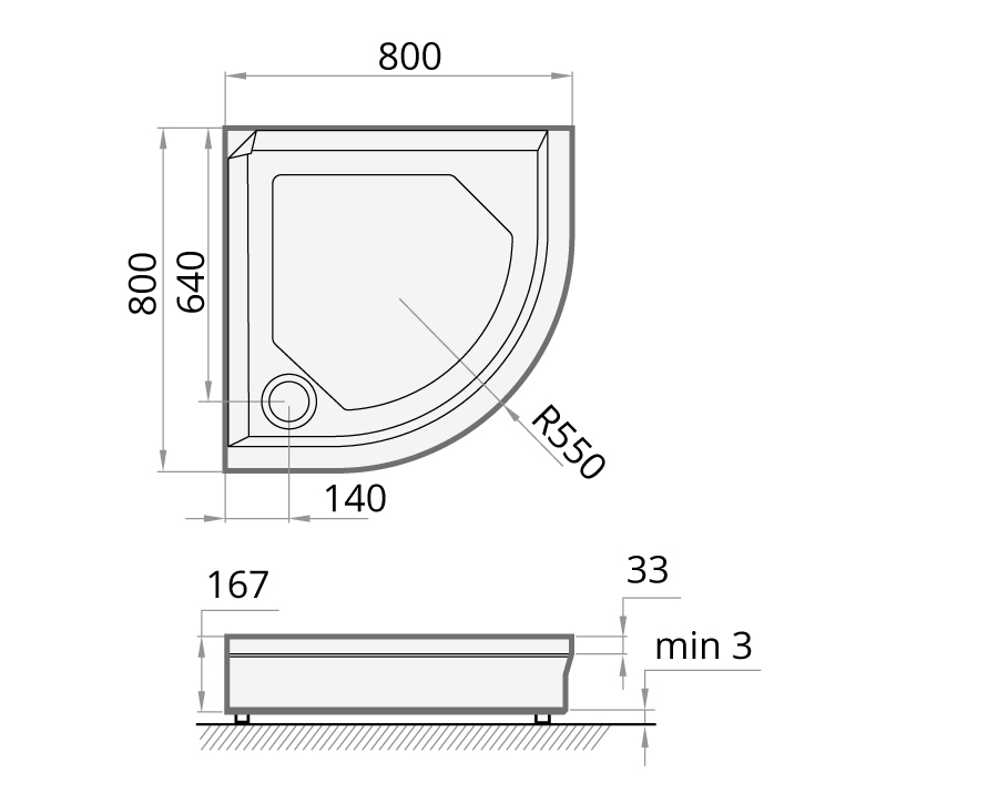 Dušialus PAA CLASSIC RO 80 R 550 + paneel & reguleeritavad jalad kogus