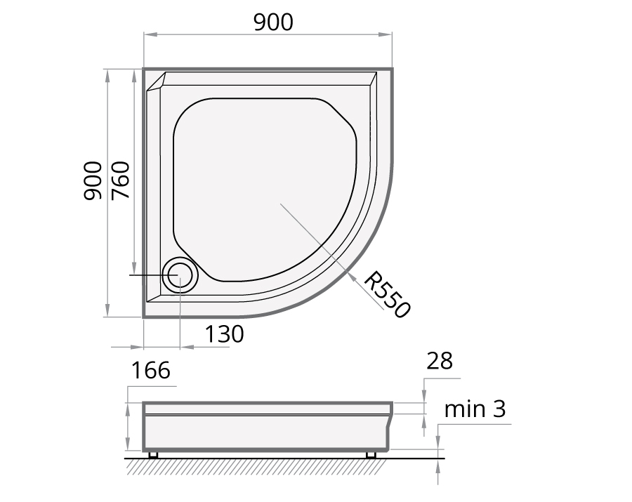 Mõõdud: 900 x 900 mm kõrgus = 165 mm