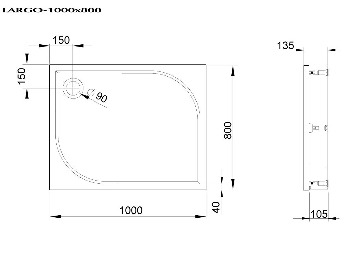 Mõõdud: 800 x 1000 mm kõrgus = 135 mm