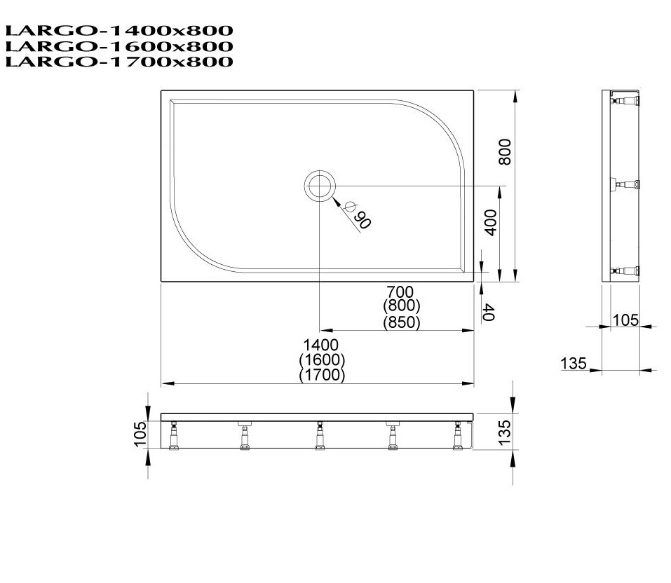 Mõõdud: 800 x 1700 mm kõrgus = 135 mm