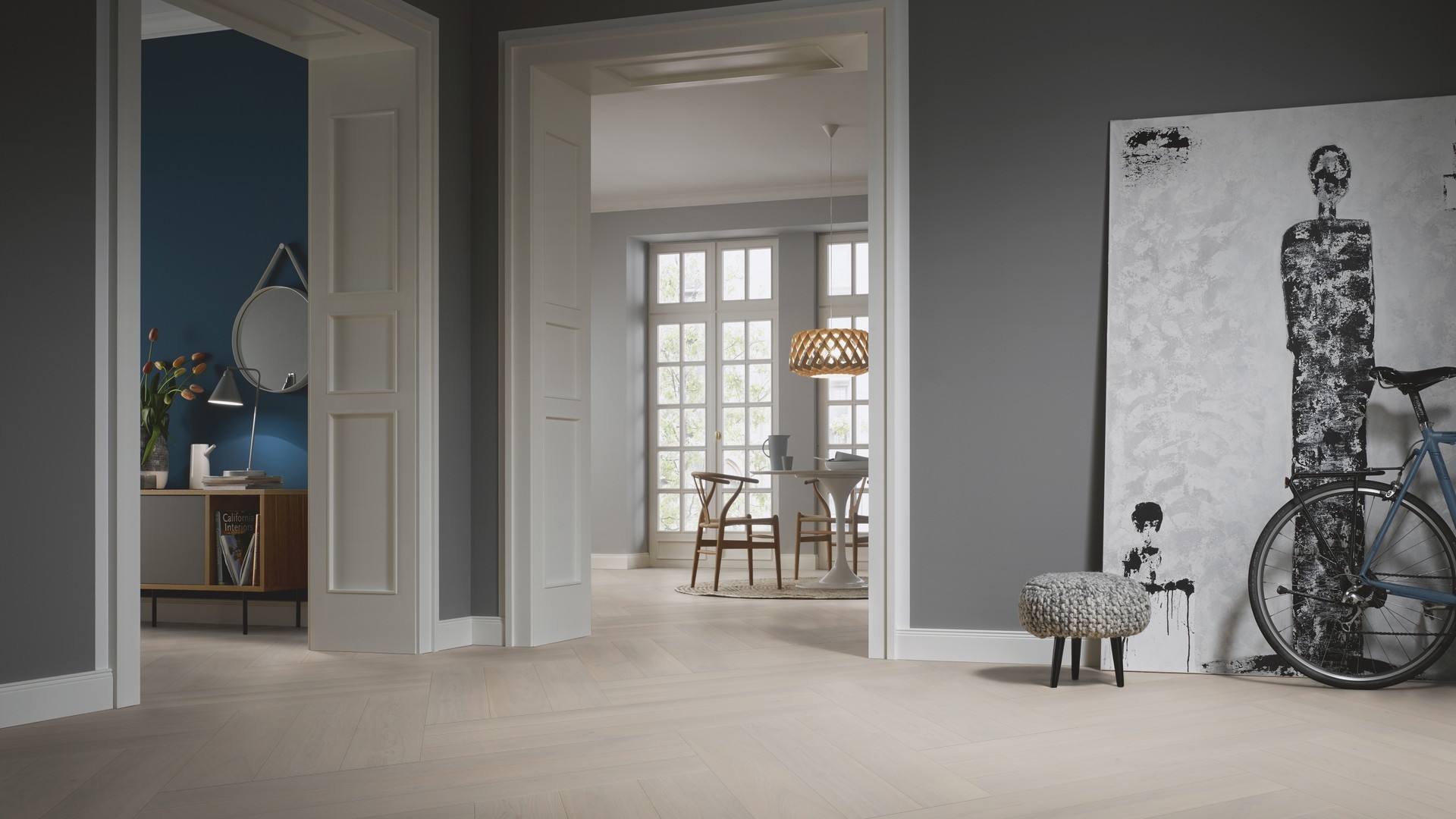 Parkett Tamm, ter Hürne, Oak grey, hall, kalasaba parkett, harjatud, faasitud, eriti matt lakk