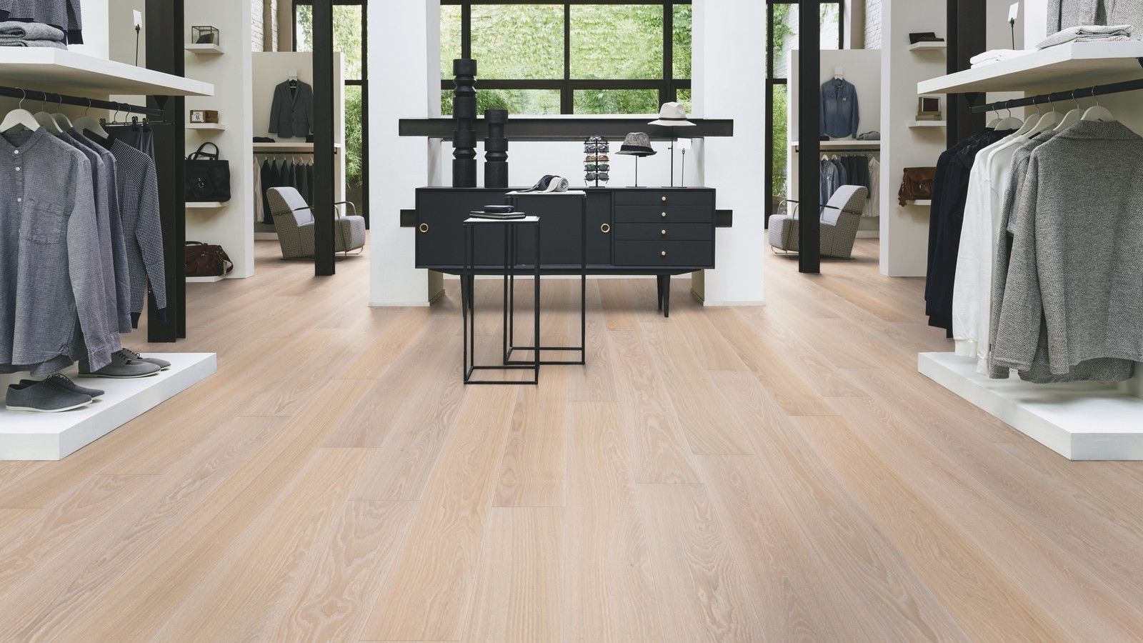 Parkett Tarkett, Prestige, Tamm White Sand, harjatud, 4 külge mikrofaas, 1-lip, Proteco Hardwax Oil õlivaha