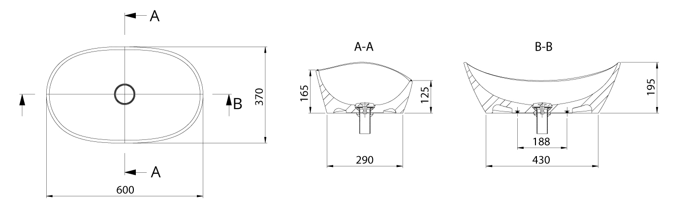 Mõõdud: 600 × 370 mm kõrgus = 195 mm