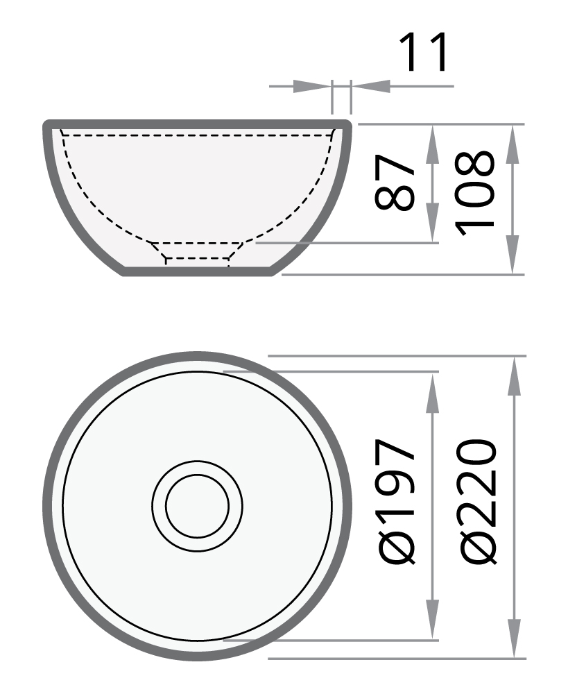 Mõõdud: Ø 220 mm kõrgus = 108 mm