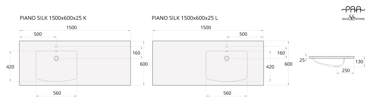 Valamu PAA PIANO SILK silkstone matt kivimassist valamu - valamuava vasakul kogus