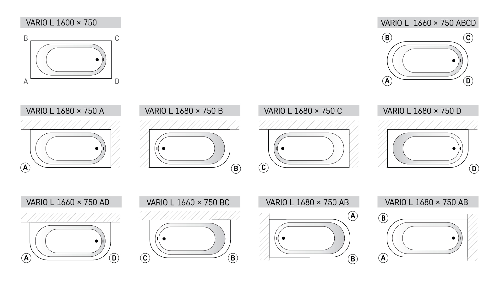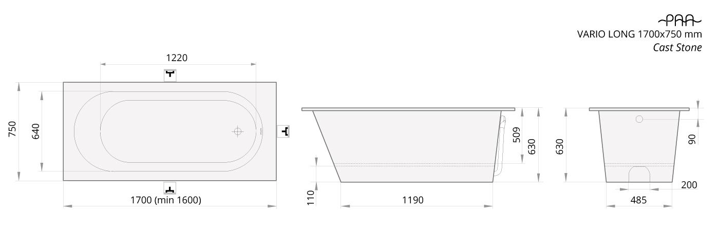 Vann PAA VARIO LONG cast stone läikiv kivimassist vann – 1 nurk ümardatud