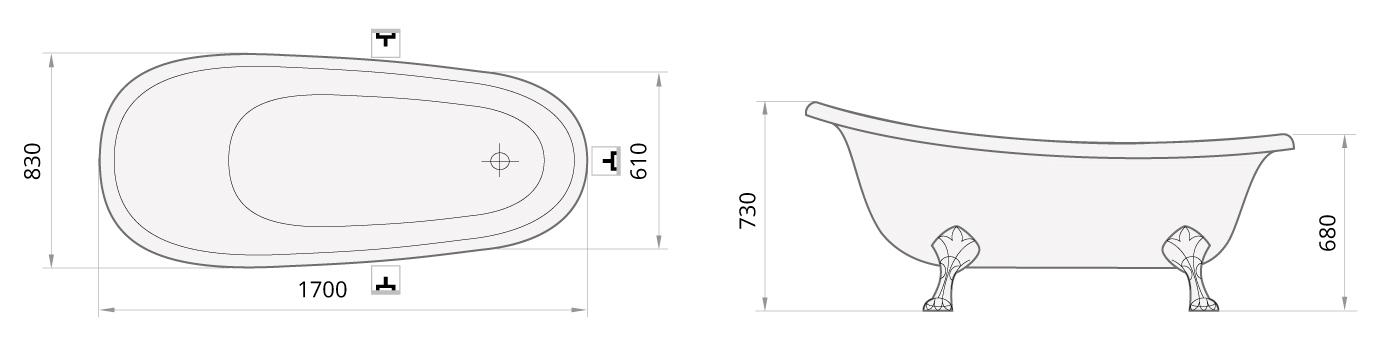 Mõõdud: 1700 x 830 x 610 mm kõrgus = 730, 680 mm
