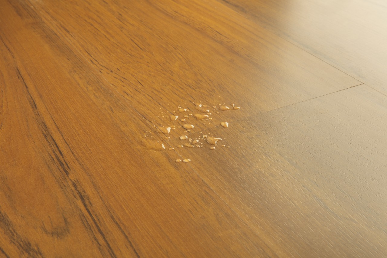 100% veekindel laminaatparketi pind. Jäta hüvasti niiskusprobleemidega. Quick-Stepi veekindlatel laminaatparkettidel on uuenduslik, vetthülgav “HydroSeal” kaitse isegi ühendustes, nii et vesi ei pääseks sisse.