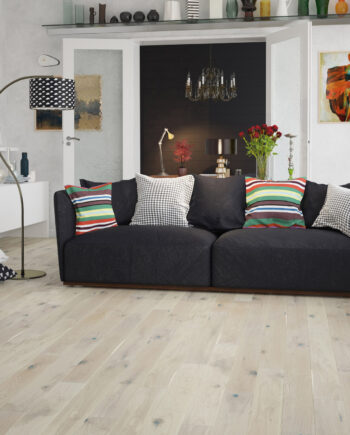 Laudparkett Tamm Rustical 1-lip faasitud harjatud valge õli.